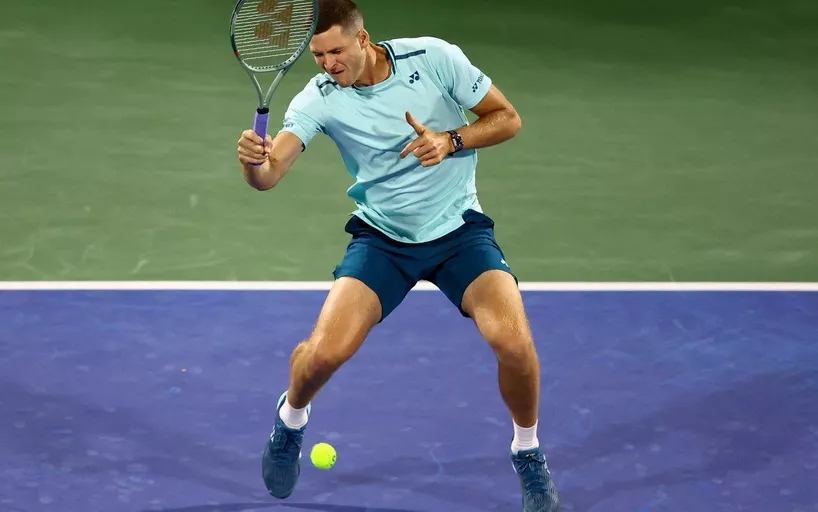 Поляк Хуберт Гуркач упал через скамейку по ходу матча 1/4 финала на турнире в Дубае.