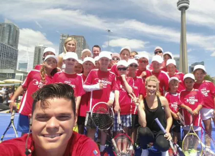 Милош Раонич и Эжени Бушар провели мини-турнир для детей на озере Онтарио