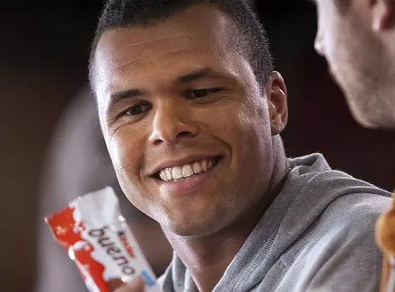 Французский теннисист Жо-Вилфрид Цонга принял участие в съёмках рекламного ролика шоколада Kinder Bueno.