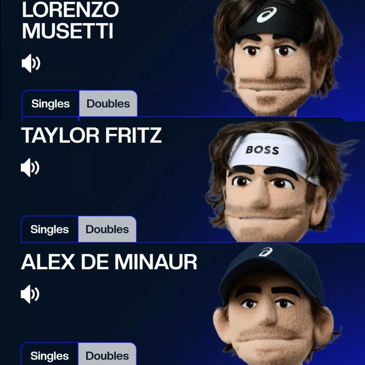 На сайте Ассоциации теннисистов-профессионалов (ATP) вместо фотографий итальянца Лоренцо Музетти, американца Тейлора Фрица и австралийца Алекса де Минаура появились изображения кукол.