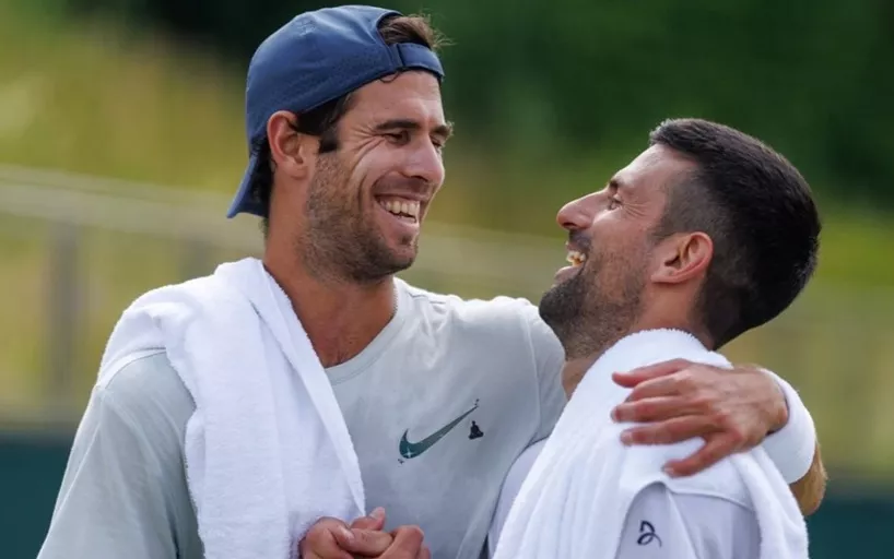 Россиянин Карен Хачанов и серб Новак Джокович встретились на тренировочных кортах Уимблдона.