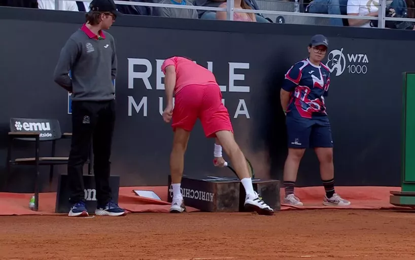 Стефанос Циципас ракеткой сломал подставку для полотенец в матче с Яном-Леннардом Штруффом