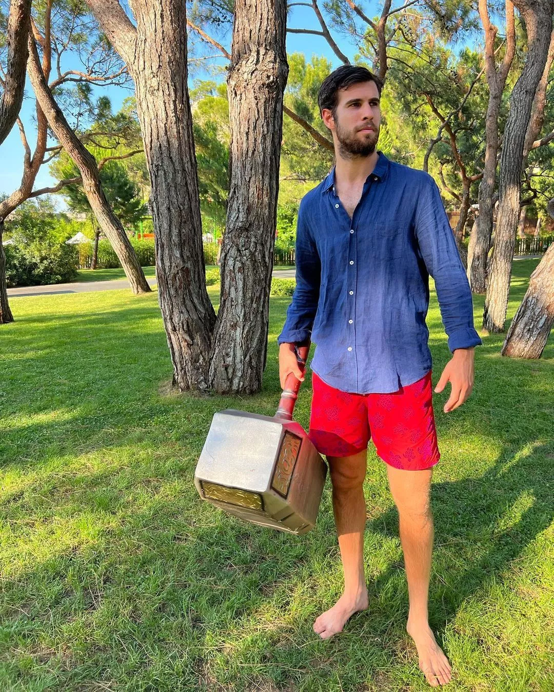 Российский теннисист Карен Хачанов опубликовал фото с большим молотом, напоминающим молот скандинавского бога Тора.